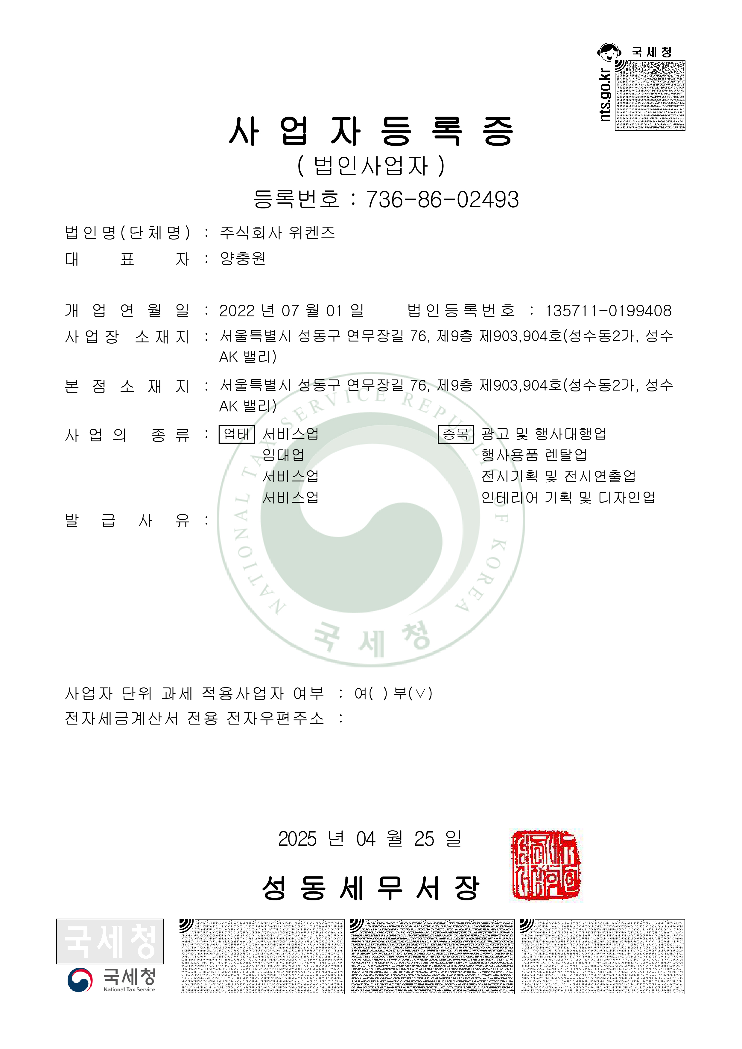 주식회사 위켄즈 사업자등록증